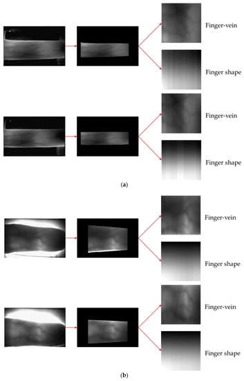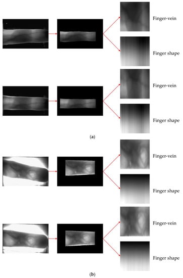 - Yang, J.; Shi, Y. Finger–vein ROI localization and vein ridge enhancement. Pattern Recognit. Lett. 2012, 33, 1569–1579. [Google Scholar] [CrossRef]