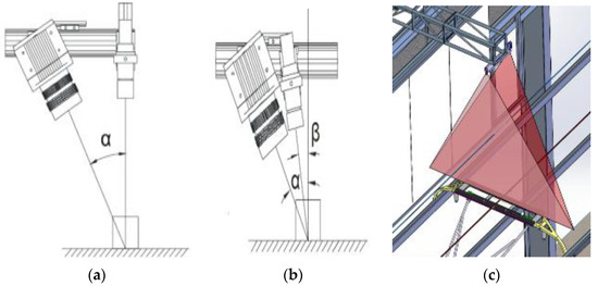 The 3D sensor adopted is based on the principle of line structure light 3D detection. Because of its high precision, high speed and multiple scanning, it has been widely used for rapid measurement of industrial machine vision in 3D. At present, two layouts are widely applied in 3D measurement, as shown in Figure 6.