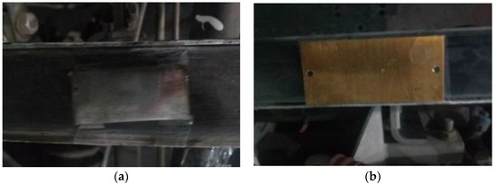 Figure 6b shows the laser oblique incidence and the camera oblique shot. In this layout, the upper surface of the sliding plate and the front surface can be captured by the camera. By finding the lower edge and the upper edge of the front surface of the bow, the wear and the resolution in the Z direction are determined using the height difference of the two positions and the laser tilt angle. The advantage of the layout (b) is that it can get the actual thickness of the pantograph slider and the disadvantages are that the calculation difficulty is increased in the Z direction. Besides, the precision is lower and the light intensity is weak. The precision relationship between the Z direction and the X direction can be written as Function (2).