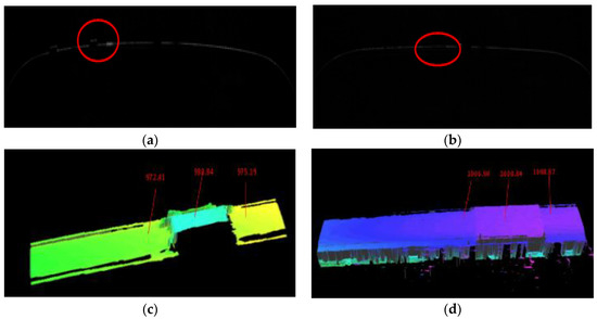 The 3D camera has a resolution of 1536 × 512 and a pixel size of 9.5 μm × 9.5 μm. The direction of the chip is parallel to the pantograph. If the focal length of the lens is 8 mm, the width of the field of the view angle is calculated as 34 degrees in accordance with Function (3). If the focal lengths are 12 mm, 16 mm and 25 mm, the corresponding lens field angles are 23 degrees, 17 degrees and 11 degrees accordingly.