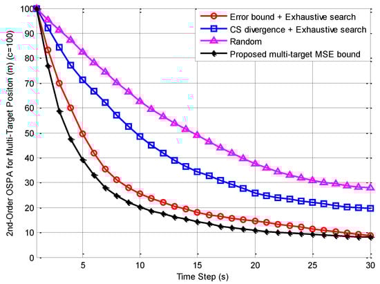 (4) Although the OSPA is currently the most popular metric in MTT, it does not penalize false targets, missed detections and localization errors, which are the usual/intuitive errors of interest in multitarget estimation. To solve this, a new improved metric called generalized OSPA (GOSPA) is proposed in []. Therefore, one of our research plans is to extend the multi-sensor control method of this paper based on the GOSPA metric because of its excellent consistency in mathematics and intuition compared with the OSPA metric.
