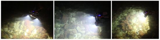 The built trifocal Remotely Operated underwater Vehicle (ROV)-attached system in action.
