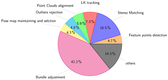 The SLAM family of methods uses probabilistic models to handle a vehicle’s pose. Although this kind of method was developed to handle motion sensors and map landmarks, it works efficiently with solely visual information [24]. In this case, a map of the environment is built, and, at the same time, it is used to deduce the relative pose which is represented using probabilistic models. Several solutions to SLAM involve finding an appropriate representation for the observation model and motion model while preserving an efficient and consistent runtime. Most methods use additive Gaussian noise to handle the uncertainty which is imposed using the extended Kalman filter (EKF) to solve the SLAM problem [34]. In cases where visual features are used, EKF may fail to estimate the trajectory accurately due to the significant uncertainties that appear in large loops [13]. Additionally, runtime and used resources grow constantly for large environments. Later works tried mainly to handle scalability issues.