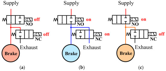 - Miller, J.; Cebon, D. Modeling and performance of a pneumatic brake actuator. IMECHE Part C J. Mech. Eng. Sci. 2012, 226, 2077–2092. [Google Scholar] [CrossRef]