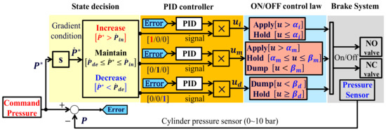 - Kim, S.; Jang, H. Tracking Performance of Brake Pressure Control. Available online: http://www.riss.kr/link?id=A76026370 (accessed on 12 July 2018).