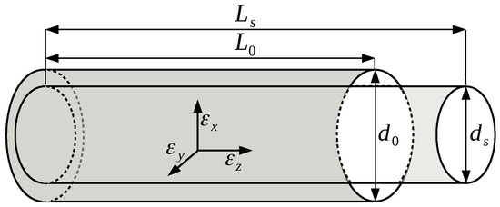 Furthermore, the applied axial strain leads to a lateral strain in the directions x and y (Figure 2), which can be obtained with Poisson’s ratio :
