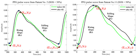 In the case of HD treatments, access stenosis and vessel wall elasticity impair are frequently occurs [9].Vascular compliance was significantly associated with intra flow, resistance and changes in blood volume. Deformation of each PPG pulse shape was important parameter to classify the degree of stenosis (DOS) in HD patients. In the previous study, the bilateral difference in PPG pulse shape between two hands was also associated with the stenosis [7,8,9,10,11,12,13,14].