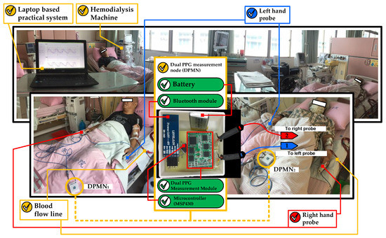 As explained in Section 2.1, this work was done based on our IRB to the HD patient that hospitalized in the hospital. Furthermore, the system has been implemented directly about the study with the technique as described in Section 2. Figure 6 shows the utilization of dual optical PPG sensors to classify the degrees of stenosis in HD treatment patients.