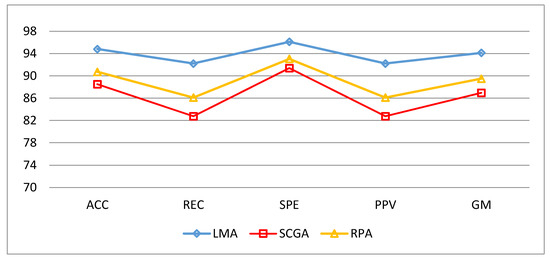 The values of TP, FP, FN and TN for the three classes are respectively calculated using Equations (18)–(21):
