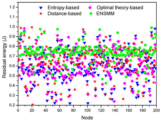 The residual energy of each node under different algorithms.