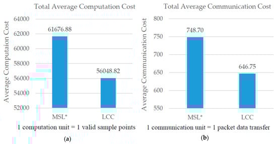 (a) Average computation cost of MSL* and LCC. (b) Average communication cost of MSL* and LCC.