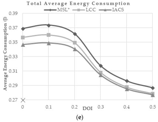 Figure 9a,b shows that the average estimation error and the total closeness value of all methods are rapidly increased when the DOI value is above 0.2 and 0.3, respectively. However, the proposed IACS demonstrates the lowest average estimation error and the average closeness for every DOI compared to MSL* and LCC. This shows that IACS is more robust in the environment with a wider variation of radio signal transmission.
