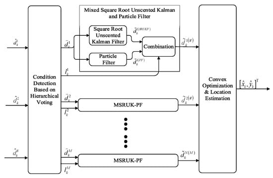 - Pak, J.M.; Ahn, C.K.; Shi, P. Distributed Hybrid Particle/FIR Filtering for Mitigating NLOS Effects in TOA-Based Localization Using Wireless Sensor Networks. IEEE Trans. Ind. Electron. 2017, 64, 5182–5191. [Google Scholar] [CrossRef]