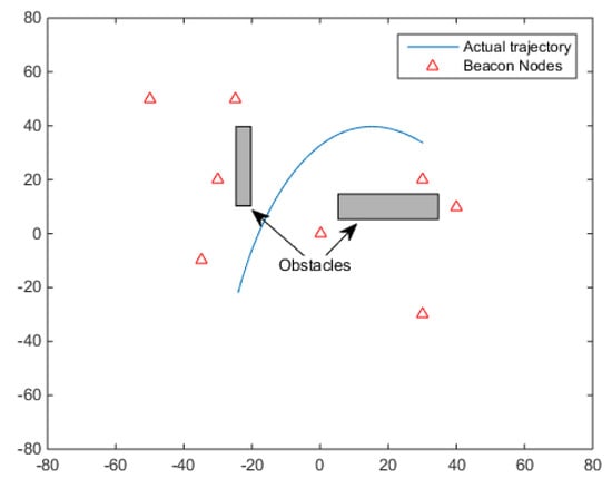 In this section, we introduce some technical preparation. We assume that N beacon nodes () are randomly deployed in the field. The location of the obstacles is unknown. The mobile node moves randomly in the field, at time k the position of mobile node is . This paper considers a 2-D localization scenario.
