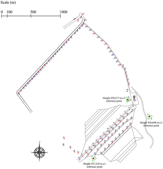 Three points used as reference (point 1, point 2 and point 52) (Figure 6). Analyses of the geodetic monitoring data (there are no levelling data available before July 1999) at the benchmarks evidenced relevant vertical displacements.