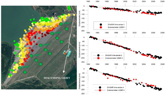 The displacement velocity reported in Table 9 was estimated for the extensometer USBR 7 and USBR 10 in the period between 1981 and 2011 by linear regression.