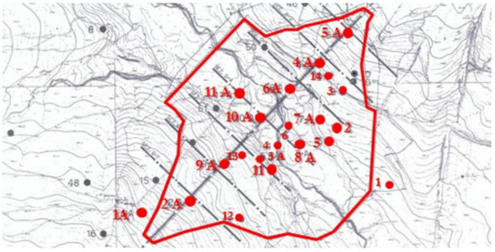 During this period, due to the Irpinia earthquake (23 November 1980) and to the issuing of the new Italian building code (D.M.LL.PP. 24-03-1982—“Technical standards for the design and construction of dams”), a modification of the project was required (December 1985) to change the geometry of the cross section. The main changes were the elevation of the dam crest, from 445 to 448.9 m a.s.l. and the increase of the width of crest dam from 8 to 10 m [10] (Figure 4b).
