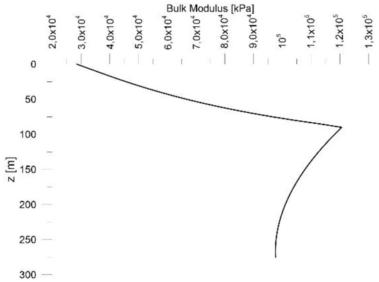 The plot of Bulk modulus K variations with depth is represented in Figure 24.