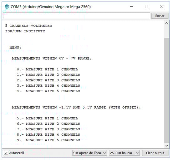 The user interface is the serial monitor window (see Figure 7). In this window, the results are shown. The design has tried to obtain the most easiest and simple interface with the user. Nevertheless, this environment can be easily customized by any potential user.