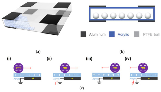 Fabrication of OT-TES: The acrylic box was made of acrylic, with a thickness of 2 mm. The size of the bottom surface was 15 cm × 19.5 cm and the height of the box was 3 cm. Four aluminum electrodes were located on the top and bottom outer surface at the corner, respectively. The total number of electrodes was 8. All electrode sizes were 5 cm × 5 cm and the thickness was 1 mm. The diameter of the PTFE balls was 6 mm. The balls occupied as much as 25% of the bottom surface.