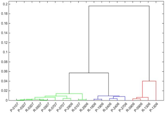 Furthermore, data obtained with the electronic nose with fresh curd from raw and pasteurized milk were evaluated by cluster analysis. Figure 5 shows the dendrogram obtained using correlation distance (one minus the sample correlation between points treated as sequences of values) and furthest distance method.