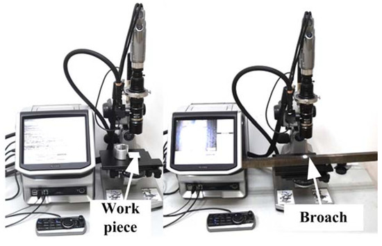 - Axinte, D.A.; Gindy, N. Tool condition monitoring in broaching. Wear 2003, 254, 370–382. [Google Scholar] [CrossRef]