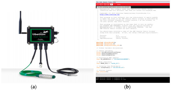 RSSI measurement system: (a) commercial Wireless Sensor Network (WSN) node used; (b) programming interface.