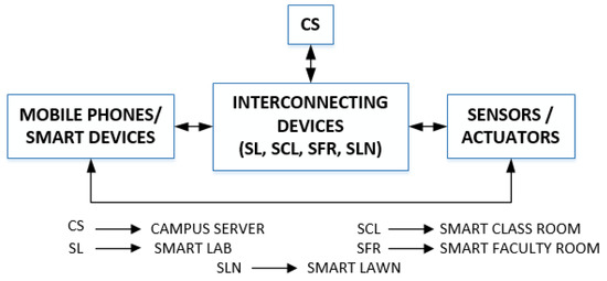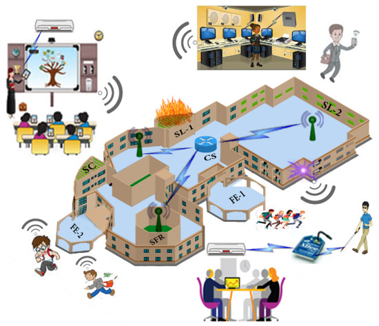 The Internet of Things (IoT) aims to provide promising connectivity solutions across the globe. IoT also plays a vital role for communication among the homogeneous and the heterogeneous devices required to control and monitor these devices. The main reason behind the attraction of researchers in IoT is smart devices that are frequently used nowadays [1,2]. By enabling IoT, we can build smart applications such as smart health-care [3], smart grid, smart home [4,5], smart campus [6,7,8], smart building [9] and smart city [10] with more reliability. One of the major applications of IoT is Disaster Management System (DMS). DMS mainly considers flood, earthquake, fire, and storm. Many organizations are working to build such IoT-based DMSs that include ZIZMOS funded by SBIR [11] and RIO operation center funded by IBM [12]. Disaster (fire) management becomes more effective for the crowded places such as smart campuses, shopping malls and airports. From IoT perspective, smart campus (SC) is an important scenario. In SC, thousands of students move around the campus premises during a day. It becomes significant as well as difficult to protect each and every student from such a disaster. For example, a disaster (fire) incident occurred due to a short circuit in a classroom of The University of Lahore (UOL) Islamabad campus and another tragic fire disaster occurred at St. Andrew University United Kingdom in its chemistry department [13]. In few seconds, the whole department was on fire. Moreover, the information loss along with infrastructure damage were added effects [14] of that disaster. However, it could be beneficial if university administration installs an IoT-based DMS on the campus to protect students’ life. In order to make an IoT-based DMS for an SC, we need a robust and reliable communication among IoT devices. List of key terms which we use in this paper are listed in Table 1.