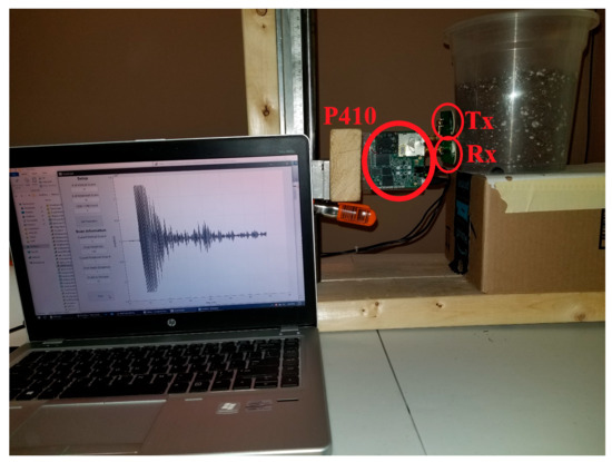 The UWB device used for transmitting and receiving the UWB signals is the PulsOn 410 (P410), and detailed information can be found on the Time Domain website [34]. The device transmits a 3.1 GHz–5.3 GHz pulse and relays its measurements, sampled at approximately 16.4 GSa/s, via a universal serial bus (USB) connection. The device is compact, sitting on a 7.6 × 8.0 cm board, which allows for portability and ease of use.
