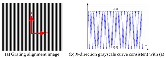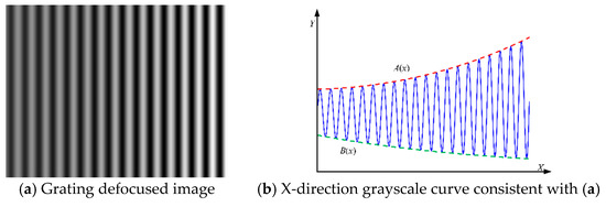 where and can be expressed as the product of a linear function and exponential function and and represent the change trend of the peak and trough of the gray value curve on the grating image, respectively, which can be expressed as