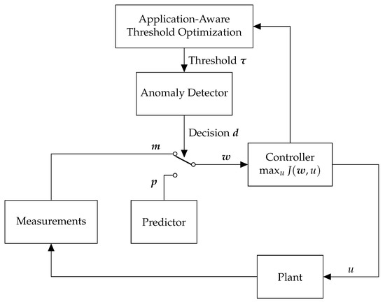 Consider a CPS, for example, an intelligent transportation system or a process control system, consisting of a plant and a controller as shown in Figure 1. At each timestep, given measurements containing information about the system, a controller computes a control input u that maximizes a utility function . In other words, the controller determines the optimal control input defined as