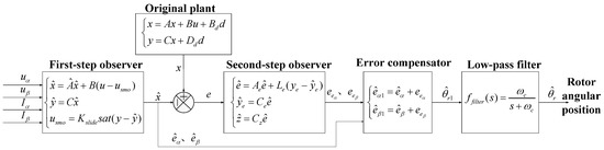 In this way, the two-step angle error estimation and compensation strategy can be accomplished. The control scheme block is shown in Figure 4. The overall angular position estimation and compensation algorithm can be summarized in Algorithm 1.