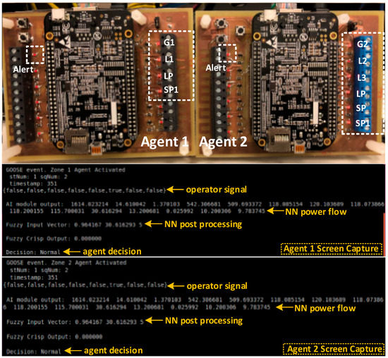 - Finally, implementing the developed security multi-agent system on a hardware laboratory scale power system with an IEC 61850 communication architecture, taking into consideration the practical aspects that arise from the hardware implementation of the power system, agents as embedded microcontrollers, and communication network. The obtained results from the experimental setup proved the feasibility of the proposed security algorithm in real-time physical power systems.