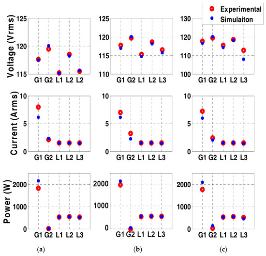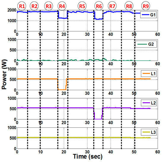 - Three loads each having 10 levels of parallel resistive loads ranging from 300-W to 3-kW. In this experiment, L1, L2, and L3 are set at 600 W each. L3 is considered to be a critical load, and therefore, has a redundant path to the generation units.