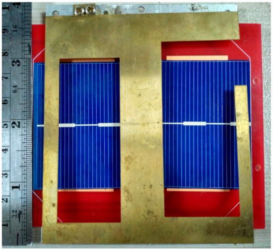 Fabricated prototype of the proposed antenna integrated with the solar panel; the solar panel is placed in between the radiating patch and ground plane.