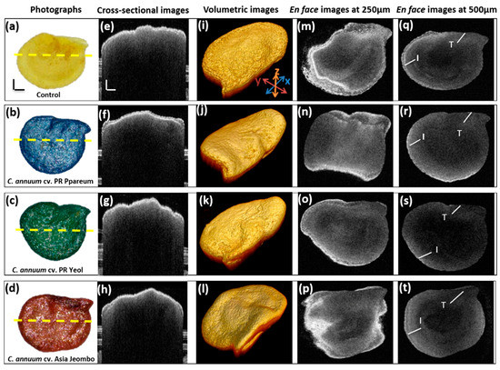 - Wijesinghe, R.E.; Lee, S.-Y.; Kim, P.; Jung, H.-Y.; Jeon, M.; Kim, J. Optical sensing method to analyze germination rate of capsicum annum seeds treated with growth-promoting chemical compounds using optical coherence tomography. J. Biomed. Opt. 2017, 22, 091502. [Google Scholar] [CrossRef] [PubMed]