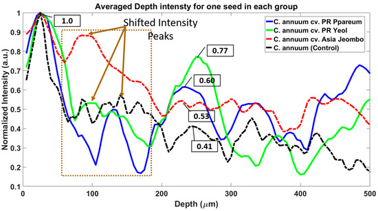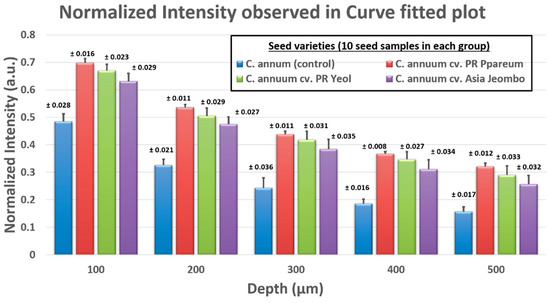 | Seed Varieties (10 Seed Samples in Each Group) | Depth (µm) | |||||||||