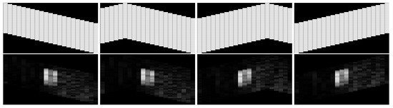 The final shape of the v-shape formation may vary, i.e., it may result in unbalanced formations, which will influence the coverage area of the swarm. As shown in Figure 9, we tested several unbalanced v-shape cases for our distributed salient region detection algorithm. The images in the first row are the coverage areas of different unbalanced formations. The images in the second row are the corresponding detection results. Although the coverage area has changed, the detected salient region is the same in those situations. That means the overall properties of the algorithm still hold.