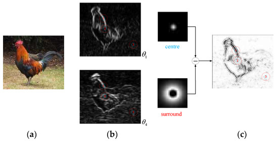 Since the mid-20th century, many researchers have focused on the field of computer vision and established a great variety of extraction models for features such as texture and contour. The orientation selectivity of the receptive fields is the theoretical basis of the contour detection algorithms based on the biological vision mechanisms. In 1965, Rodieck et al. [17] proposed the use of the difference-of-Gaussian (DOG) model for carrying out experiments on the concentric antagonistic structures of the retina and the LGN-cell classical receptive field (CRF). Daugman et al. [18] then proposed that a two-dimensional Gabor filter can well mimic the receptive field characteristics of V1 simple cells and obtain the local edge intensity of images. Detecting image contours from a complex natural scene requires the suppression of cluttered textures within the target or the area, thereby highlighting the contour lines. However, due to the complex factors in natural scenes, such as noise, light, colour, and texture, edge detection methods cannot guarantee the capture of closed and complete contour information. Additionally, existing texture suppression methods cannot measure up to the capabilities possessed by biological vision and are often limited to a certain aspect or field. Subsequently, neurophysiological and neuropsychological studies on monkeys and cats have clearly demonstrated that there is a peripheral region beyond the CRF, known as non-classical receptive field (NCRF), can mutual modulate the spiking response of a neural cell at early vision stages on to the stimuli placed within the CRF—that is contextual influence or center-surround interaction—which highlights the texture of the isolated edge group, achieving the reduction of background textures while better highlighting the real boundaries of the target area [19]. In 2003, Grigorescu et al. [20] propose a contour detector for grayscale images—that is CORF model—which aims to improve the performance of classical edge detectors by trying to inhibit the response of the gradient operator on textured regions of input images. Papari et al. [21] propose a biologically inspired multiresolution contour detector by using Bayesian denoising together with the NCRF surround inhibition.