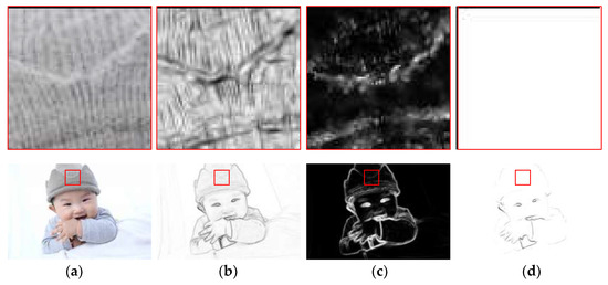 where ΔDCRF is the difference in the edge energy of the extracted receptive fields under two scales (σ and 2σ). Generally, the CRF responses at a large scale (i.e., D (x, y, 2σ)) includes reliable contours, but also misses the wanted detailed edges. In contrast, the CRF responses at a fine scale (i.e., D (x, y, σ)) covers more details, also including the unwanted edges in texture regions. Therefore, if its value is greater than or equal to zero, this pixel position is an internal texture that must be suppressed; otherwise, it is a contour edge that must be retained. In this work, we set σ = 1.1.