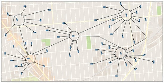 CD: Since most of the recent state-of-the-art navigation systems in the industry [,,,] are using Dijkstra’s shortest path algorithm based on real-time congestion statistics. In addition to other state-of-the-art works, such as [,], compared their systems with Dijkstra based congestion avoidance system as a benchmark. Therefore, we have implemented a centralized system and used it as a comparing baseline; we will refer to it as CD (Centralized Dijkstra).