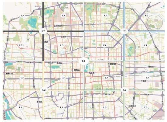 The simulation is conducted using a real map of a part of Beijing city. The map is extracted from OpenStreetMap []. This is a free open-access website that maintains data about maps and other data such as roads, trails, and railway stations from all over the world. Any map can be easily extracted by specifying the GPS coordinates of the desired area. The raw map data is downloaded in the form of filename.osm file, which is the OpenStreetMap file format. After that, the utilities (netconvert, polyconvert and randomTrips.py) that are part of the SUMO traffic simulator are used to generate the road network file (filesname.net.xml) and the routes file (filename.rou.xml) respectively.