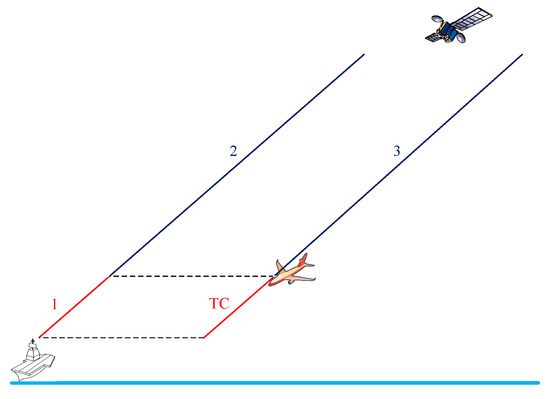 The horizontal distance between the aircraft and the ship station is the sum of the distance from the aircraft to the runway threshold and the distance from the landing threshold point to the ship station in the worst case. For GBAS, the landing threshold point is approximately 5 km or 10 km from the GBAS reference station [20]. However, in Sea-Based JPALS, the ship deck area is limited. The lengths of the United States Gerald R. Ford class aircraft carrier, the United States Nimitz class nuclear-powered aircraft carrier, and the Chinese “Liaoning” aircraft carrier are approximately 335 m, 332.85 m, and 304.5 m, respectively [21,22,23], so the distance from the landing threshold point to the ship station is assumed to be 300 m. In addition, the approach of the aircraft from a height of approximately 500 m from the landing point and a horizontal distance of approximately 17.7 km is considered.