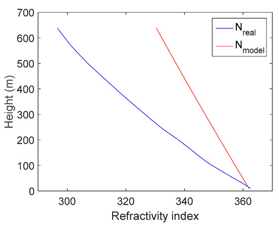 Under nominal tropospheric conditions, the pressure drops exponentially with height, and the temperature decreases with height at an approximate rate of 1 K/100 m (over the first few kilometers above sea level). As a result, the refractivity gradient over height is approximately −40/km [11]. The tropospheric delay on path 1 in Figure 1 can be accurately estimated using the TC model. However, under anomalous atmospheric conditions, tropospheric ducts can be generated that result in a large difference between the actual tropospheric delay on path 1 and the TC value, thus introducing residual TC errors.