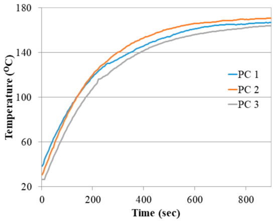 Figure 2a–c. The backside of the preconcentrator contained a heater, which was designed in three sections for homogeneous heat distribution. Two pads were used for electrical connection, and two hoses were used for the gas inlet and outlet. Inside the preconcentrator was an empty rectangular volume that was filled with an adsorption material. The dimensions of the preconcentrator are shown in