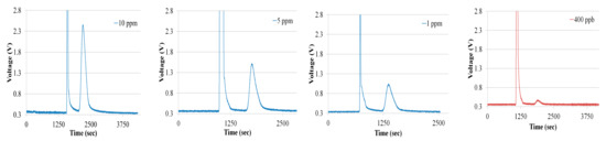 Figure 11. It is evident that no interference signal was generated because of the interference gases, like carbon dioxide and oxygen, and humidity, as seen in the chromatograms.