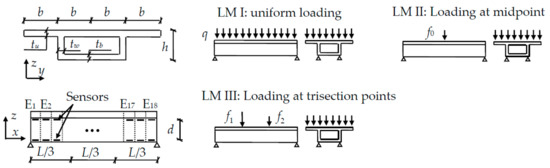 This paper is organized as follows. Section 2 introduces the ICBM as proposed in our previous research and the LFBG strain sensor that is used in the experiments. Section 3 revises the ICBM to allow for monitoring AD1 and AD2 based on long-gage strain measurements. Section 4 gives an applicable solution for LFBG sensor placement for the practical monitoring of a single-cell box girder. Finally, experiments using numerical models and a reduced-scale concrete box girder monitored by LFBG sensors are shown in Section 5 to evaluate the theoretical and actual precision of the revised ICBM.