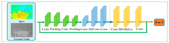 The adversarial networks mainly classify the input transmission and obtain the correct discriminant probability. Since there is a certain correlation between the transmission and depth information of the scene, we extract the features of the transmission through a convolutional neural network, which helps us obtain the characteristics of the transmission. Then, we regard the characteristic as the criterion of discrimination of the transmission. In this way, we obtain the discriminating probability of two kinds of transmissions. The adversarial networks model is shown in Figure 9.