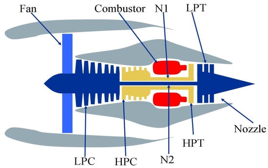To verify the effectiveness and practicability of the proposed method in Section 2, we employ the experimental data from the Turbofan Engine Degradation Simulation Data Set that are recorded by several sensors to characterize engine state evolution under different operational conditions [32]. Figure 3 gives the simplified schematic of the 90 K engine. Several sensors are arranged at the High-Pressure Compressor (HPC) to monitor the engine states.