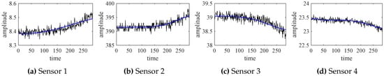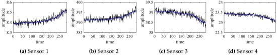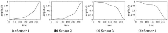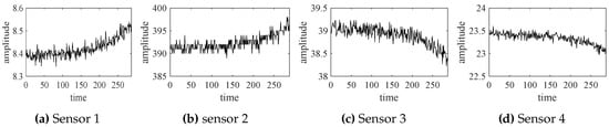 The selected experimental data (from four sensor channels) are shown in Figure 4.